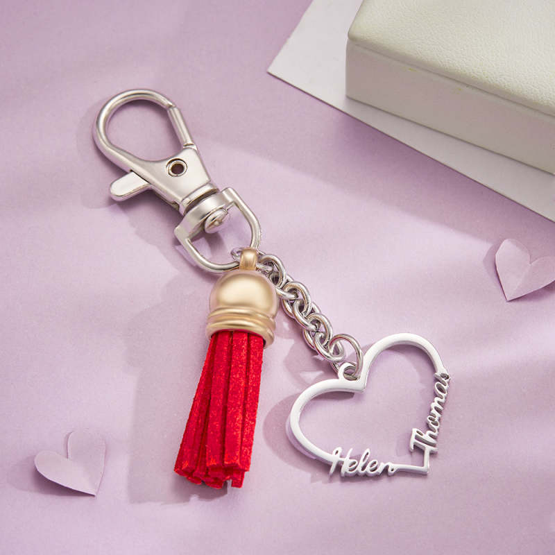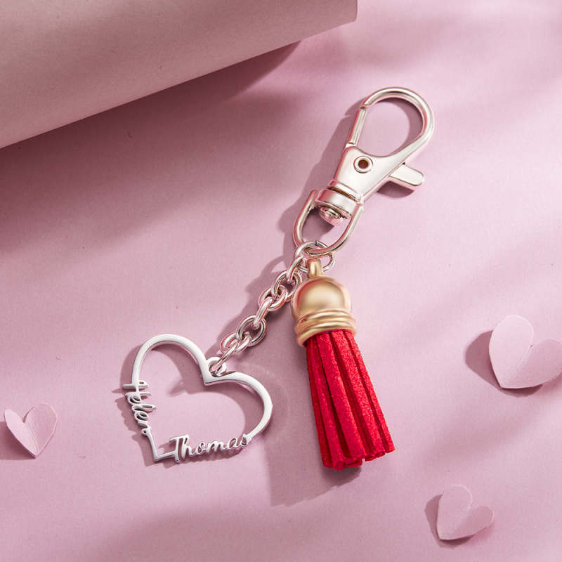 You can customize the name on this key chain. You just need to input the name you want to write, and we will make it carefully. This key chain has a unique heart-shaped appearance. It's a good choice to match it with the key. It is suitable for giving it to the people you love, family, friends and lovers to express your love for them.