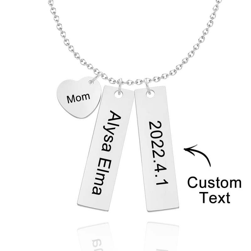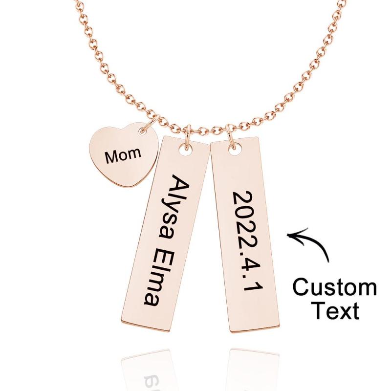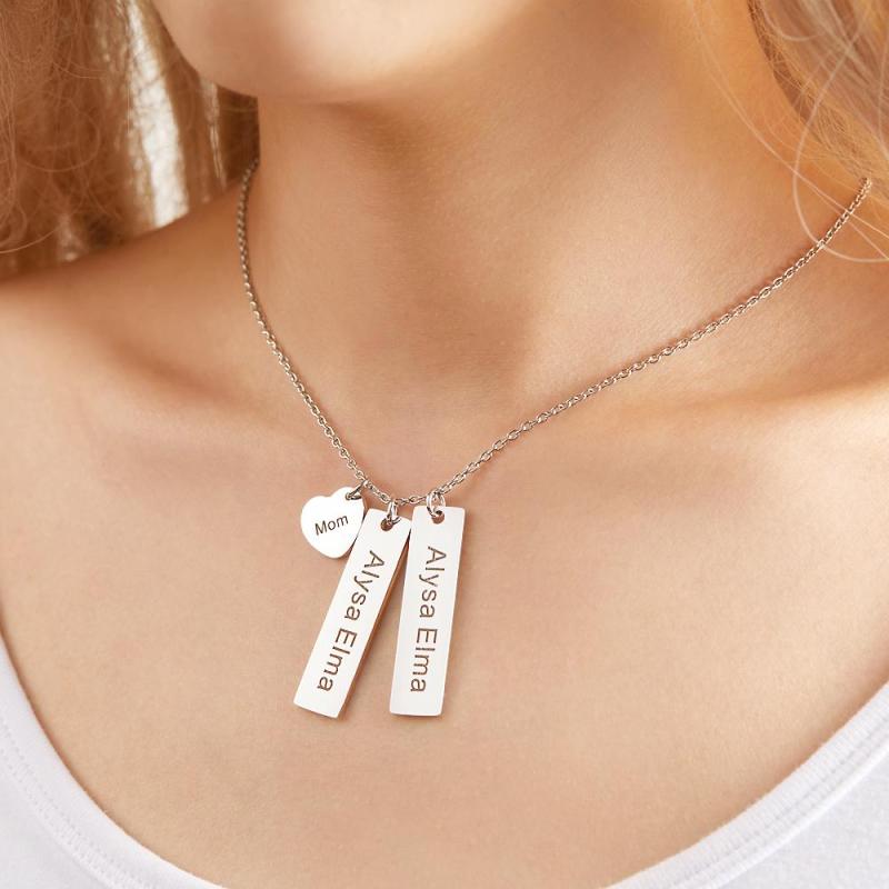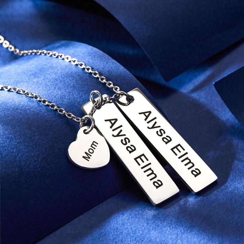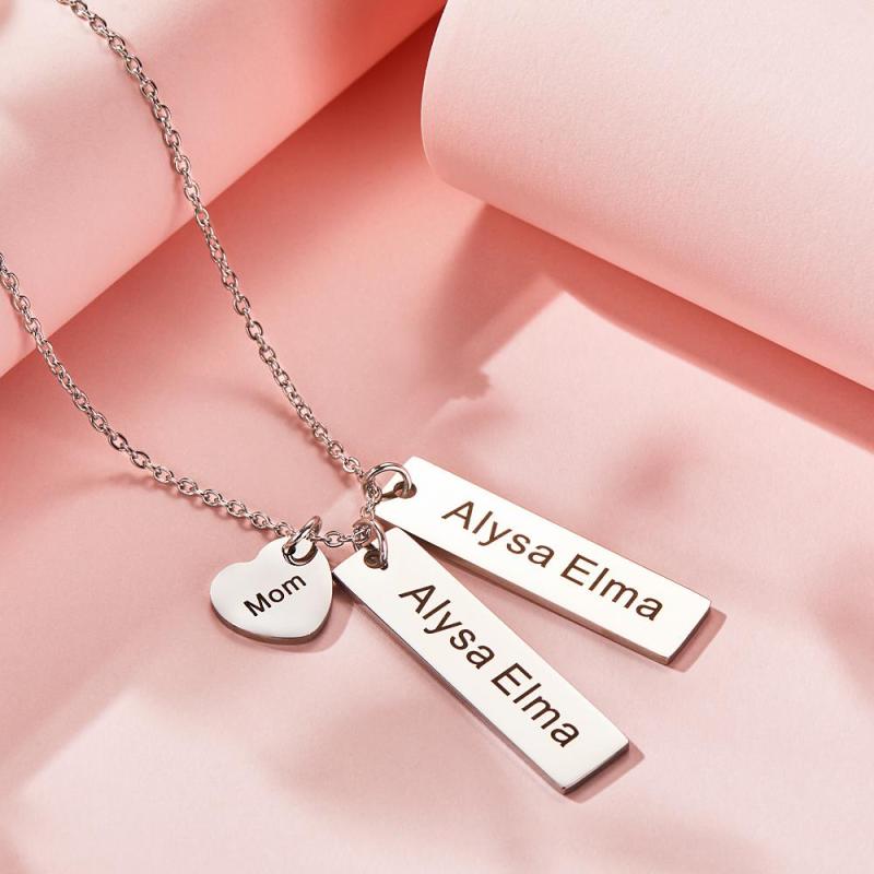 Custom lettering Necklace heart-shaped lettering necklace is a gift for mom. This necklace is composed of two strips and a heart. You can choose three colors: gold, silver and rose gold. You can choose the color you like to customize the text on it. Believe me, your mother will feel very happy when I give her such a necklace.