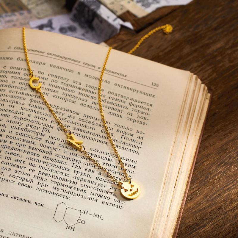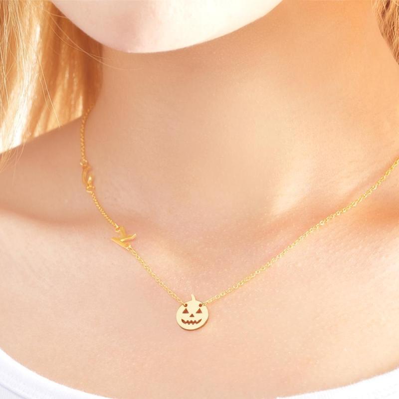Custom Engraved Necklace Pumpkin Shaped Halloween Themed Gifts