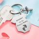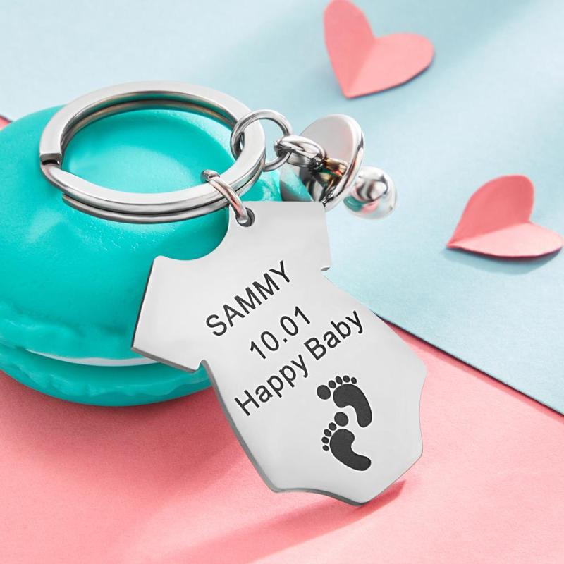 Custom carved pacifier baby set key chain for wife gift. This key chain consists of a small pacifier and a small baby suit. You can customize the text you want on the baby suit. If you have children, you can purchase this cute key chain and customize your child's name and message to your loved one. Trust me, this is a unique key chain.