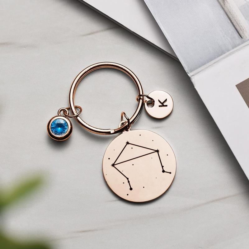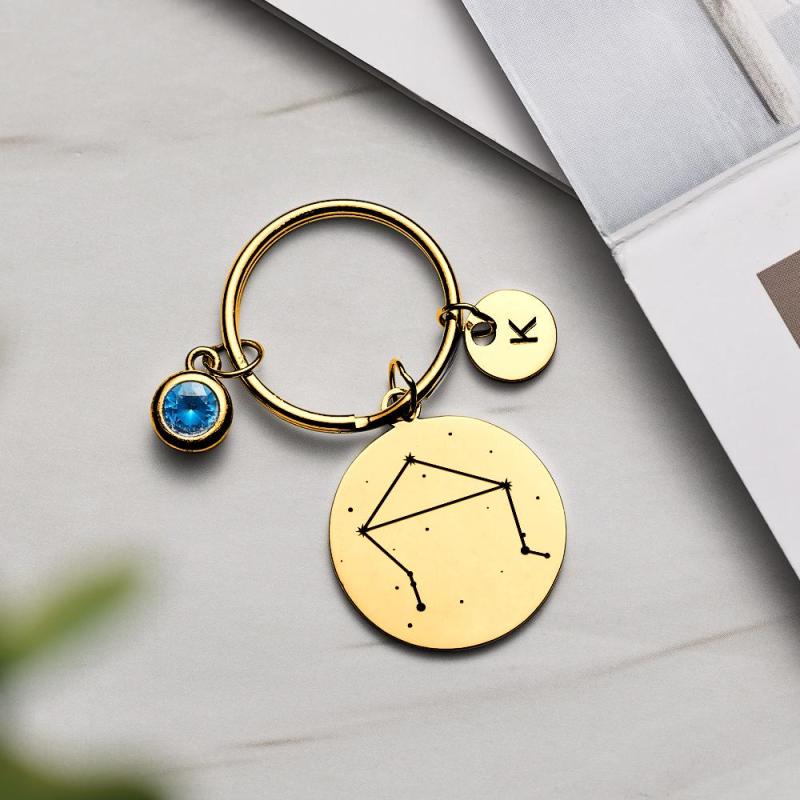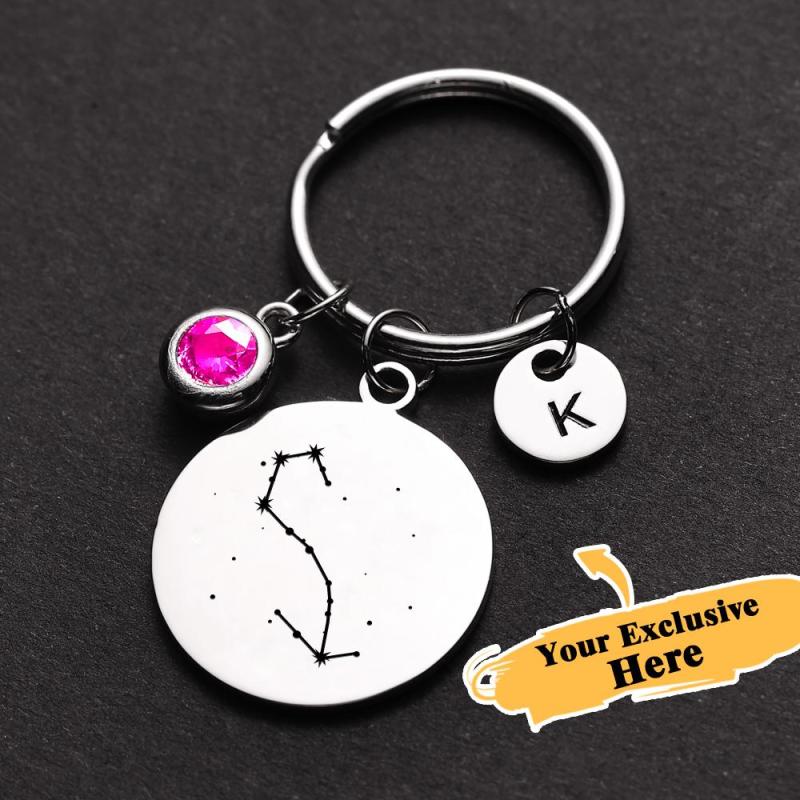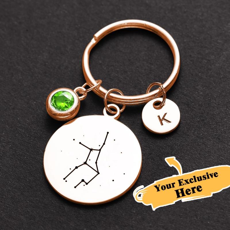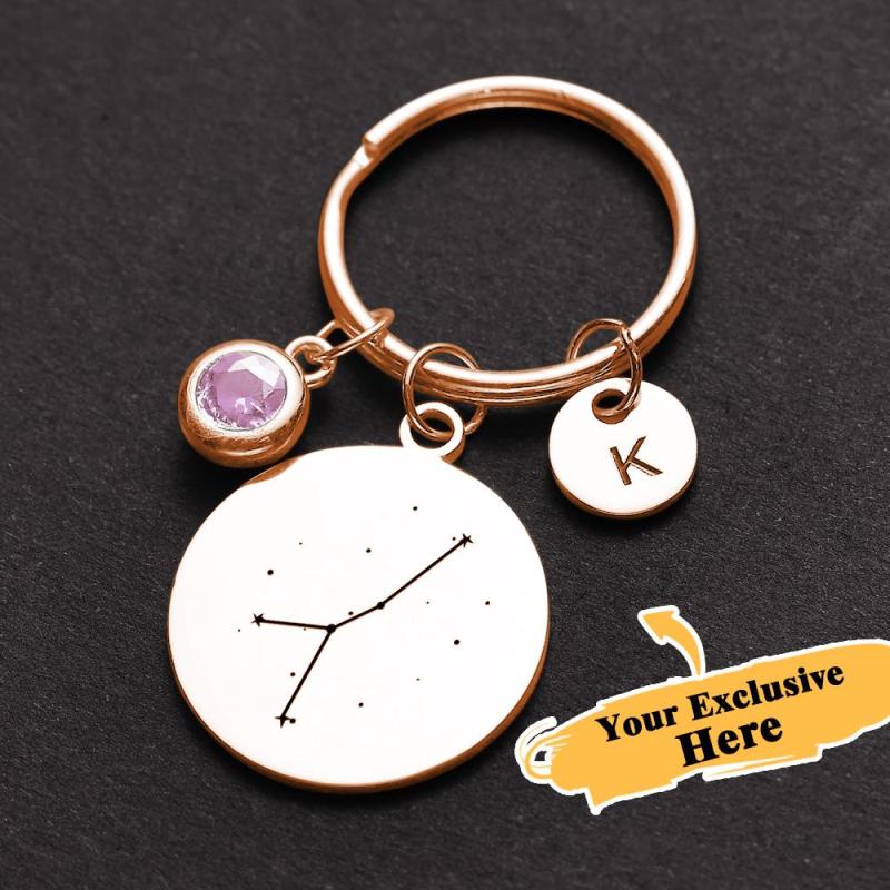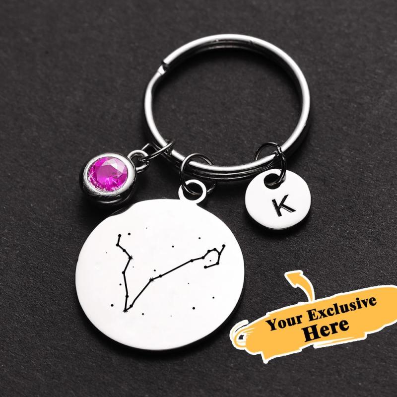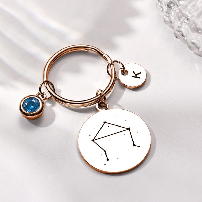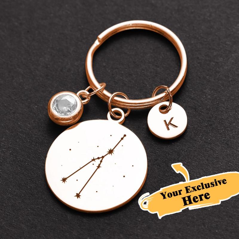 Custom Engraved Words Exchanged Diamond Zodiac Keychain Twelve Different Zodiac Gifts For Her