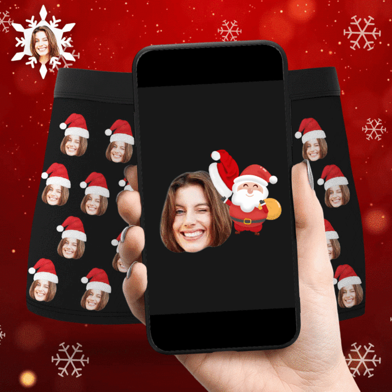 Custom Face Boxers Shorts With Christmas hat Personalized Photo Underwear Christmas Gift For Men