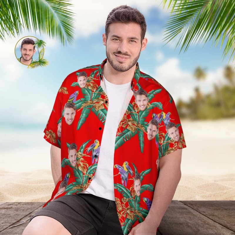 Custom Face Hawaiian Shirt Men's Popular All Over Print Hawaiian Beach Shirt Gift - Coconut Trees and Birds
