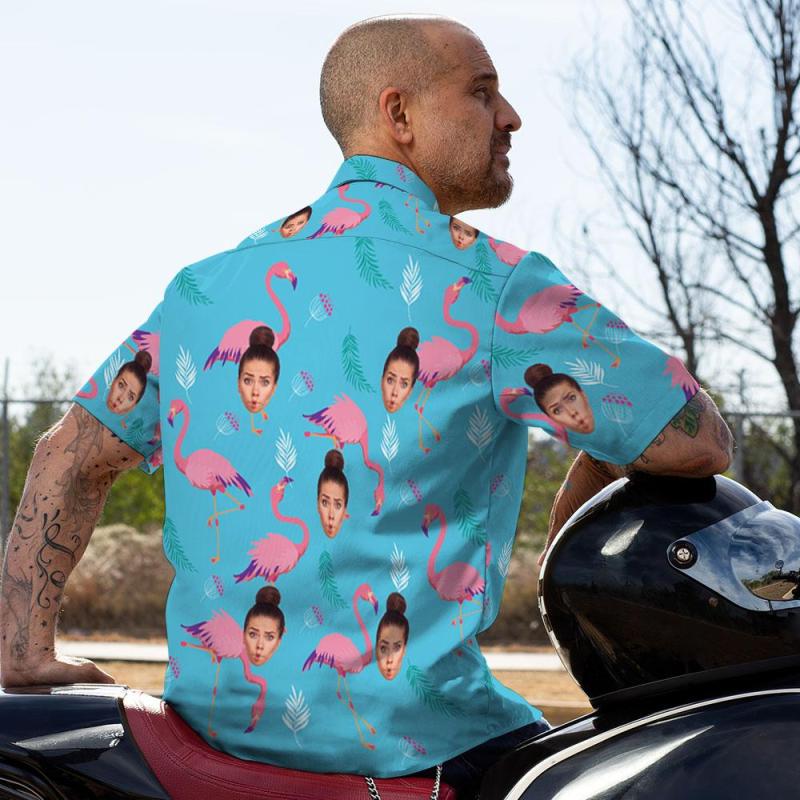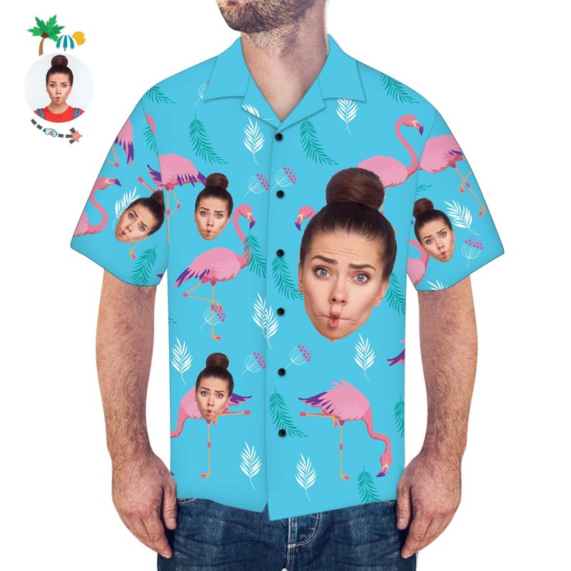 Custom Face Shirt Men S Hawaiian Shirt Pink Flamingo