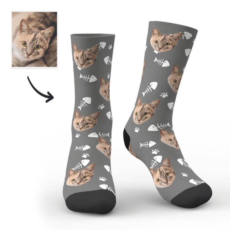 Custom Photo Socks,Fish Bones Face Socks
