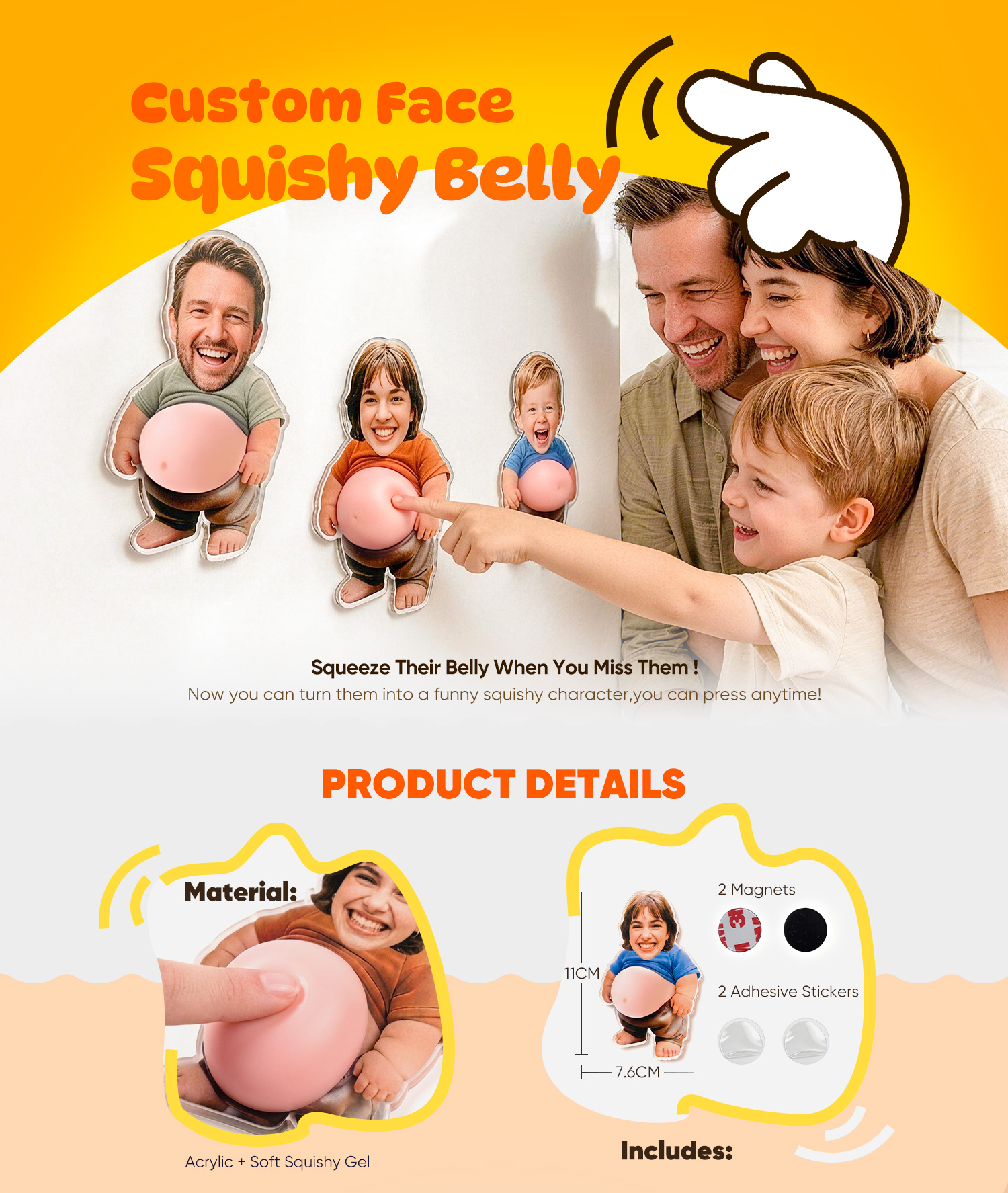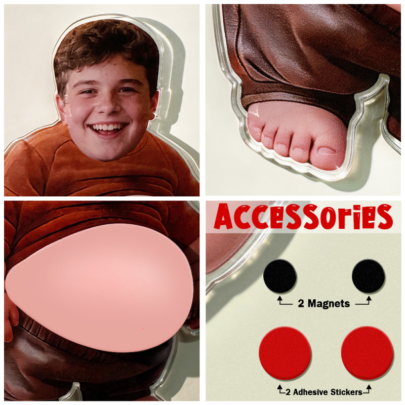 This custom face squishy belly fridge magnet lets you upload a photo, crop the face, and turn it into an adorable character with a soft, squeezable belly.