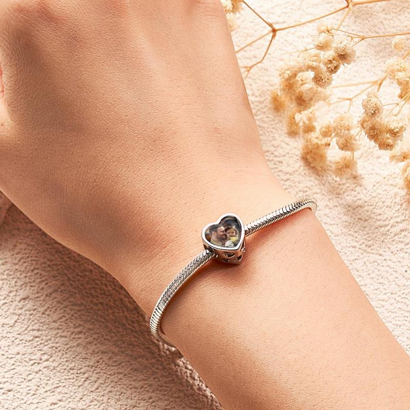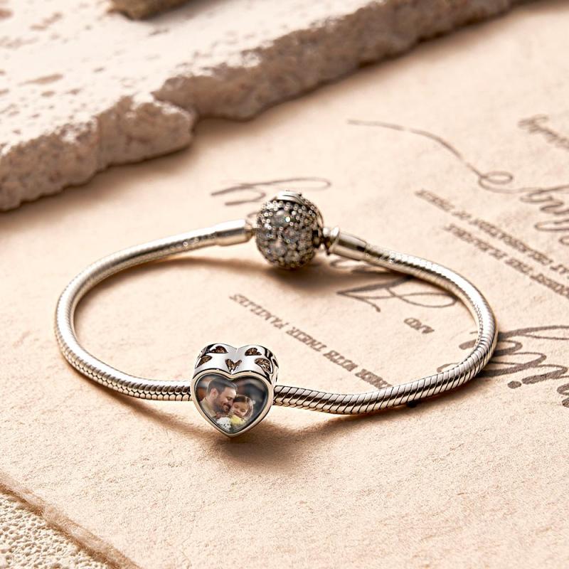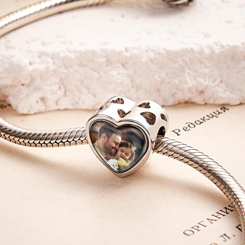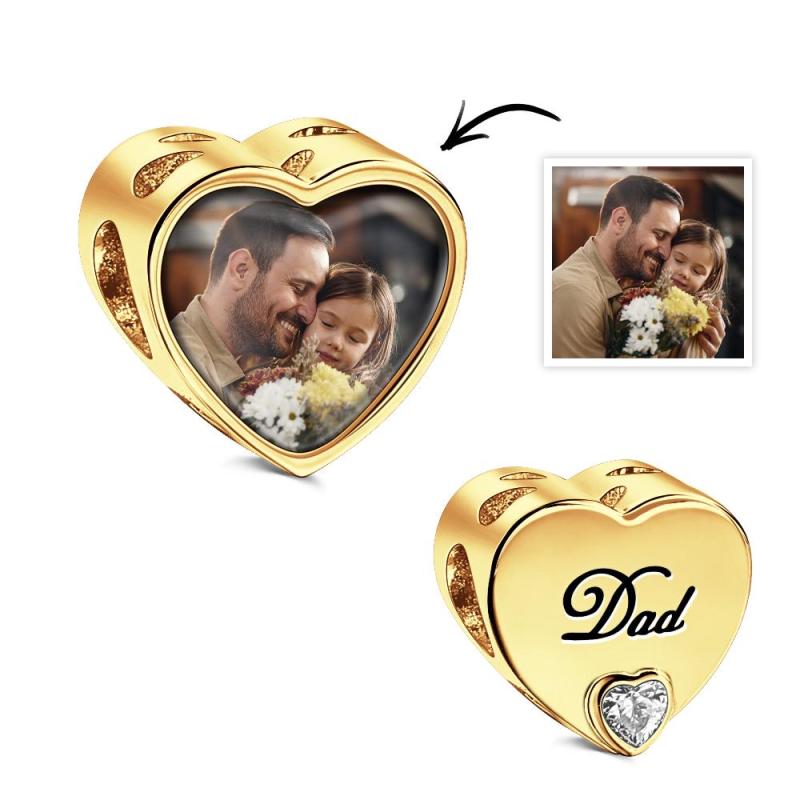 Custom Heart-Shaped Photo Charm Dad Theme White Zircon Gifts For Women