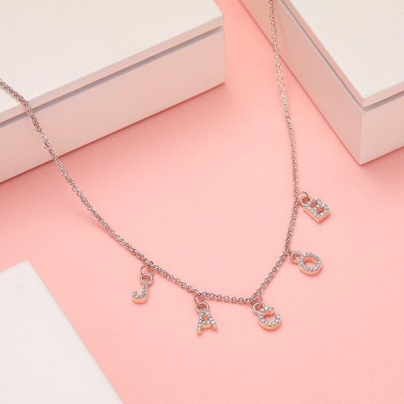 Custom Initial Necklace Name Necklace Bridesmaids Gifts Personalized Letter Necklace, Gift Letter Necklace Rose Gold Plated