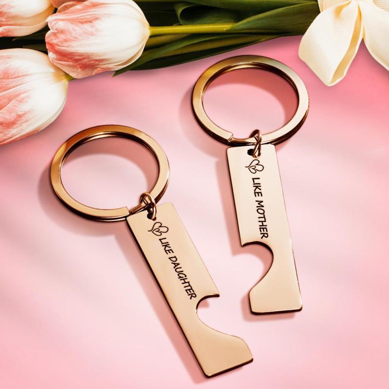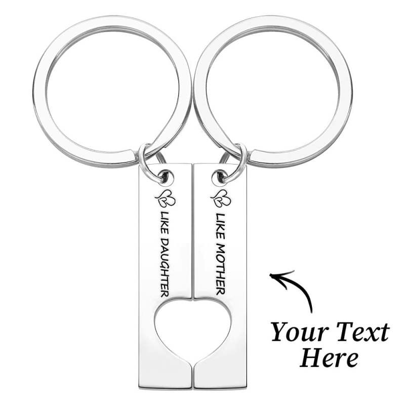 To customize the keychain, you can enter any text you want. The two keychains are a pair, you can give it to your most important person. Two keychains put together are in the shape of a heart, representing your love for each other.