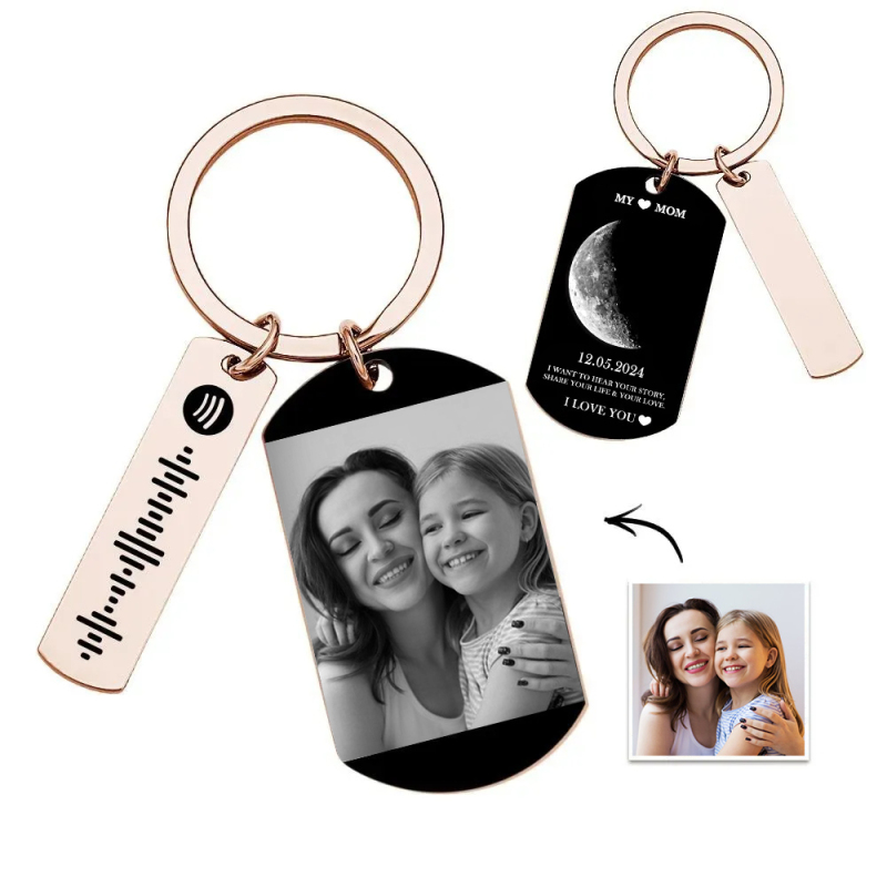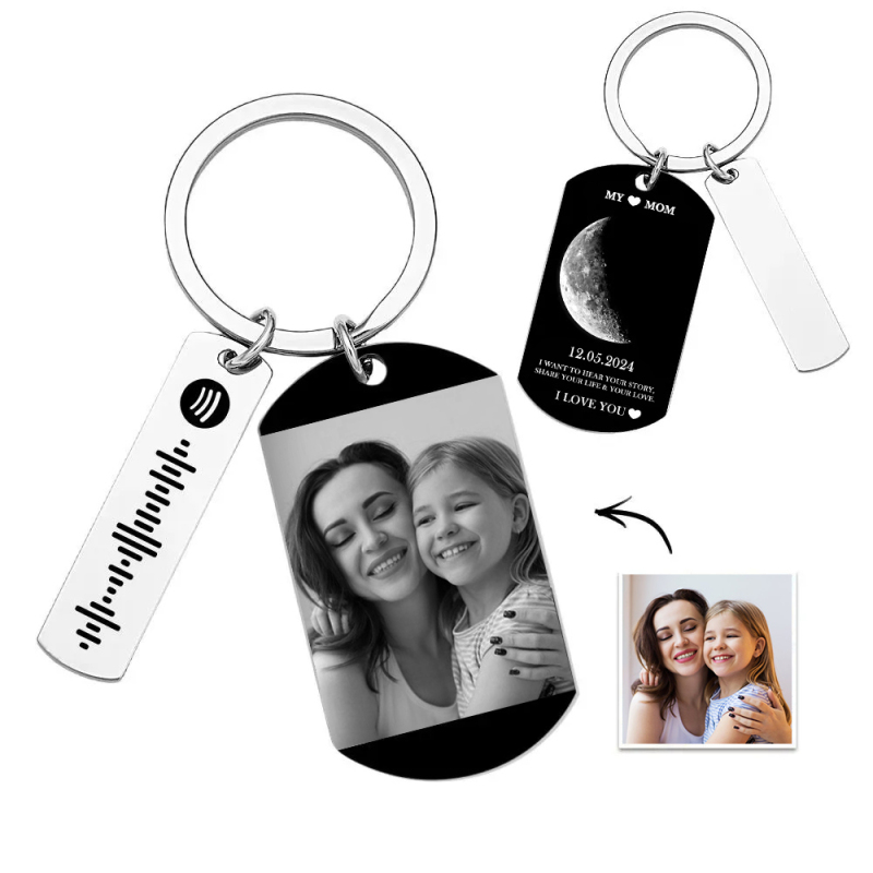 Custom Moon Phase Tag Keychain Personalized Spotify Custom Picture & Music Song Code Couples Photo Keyring Mother's Day Gift