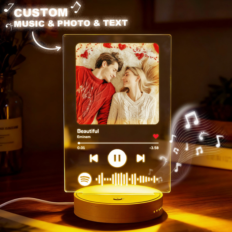 Forget QR codes and apps - this is a new level of personalization. With just one press of a button on the wooden base, your chosen song begins to play, and the soft lighting turns on. It’s not just decor - it’s your memory, your song, and your love, captured forever in sound and light.