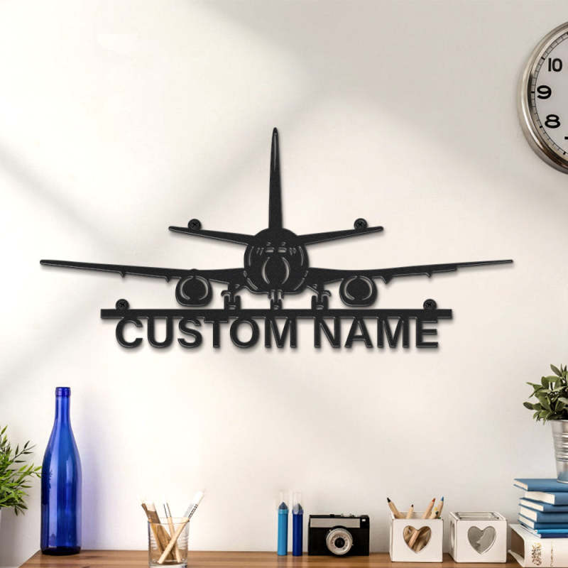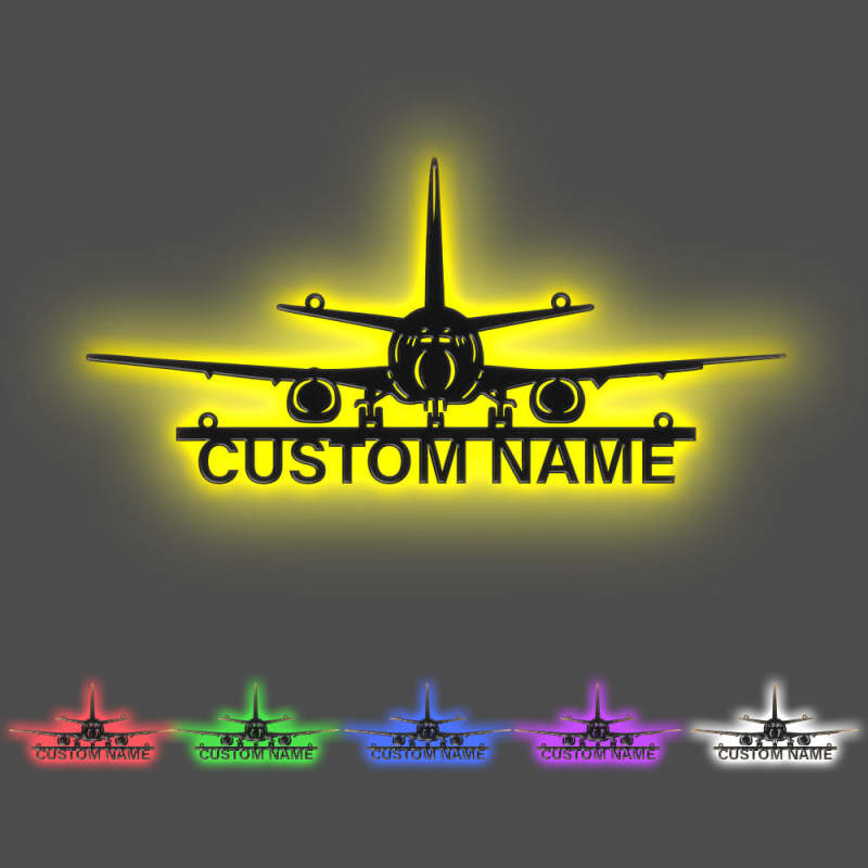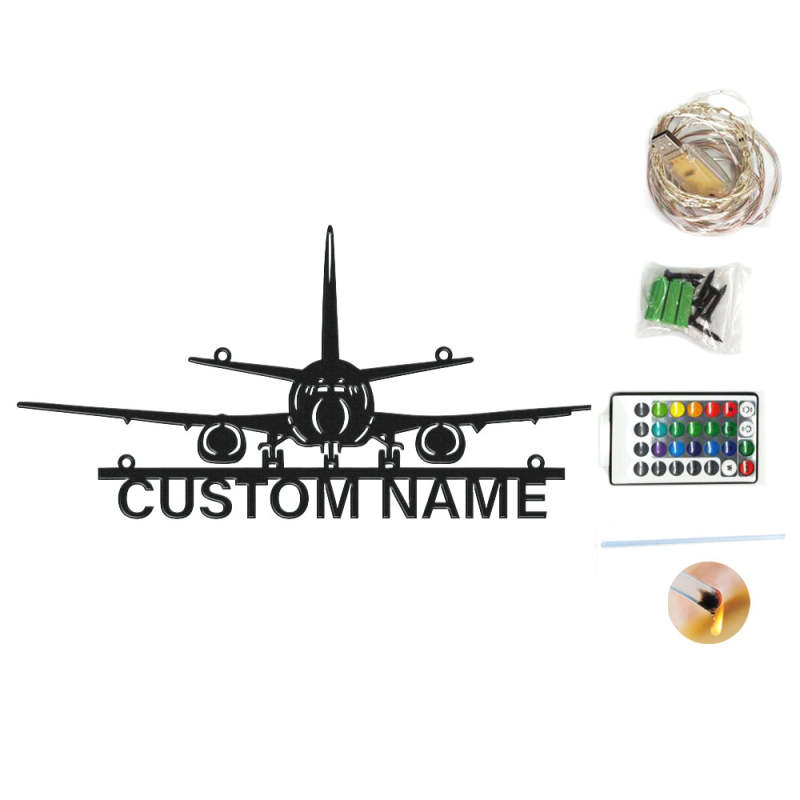 Custom Name Airplane Signs LED Lights Metal Wall Art for Home Decor Gift
