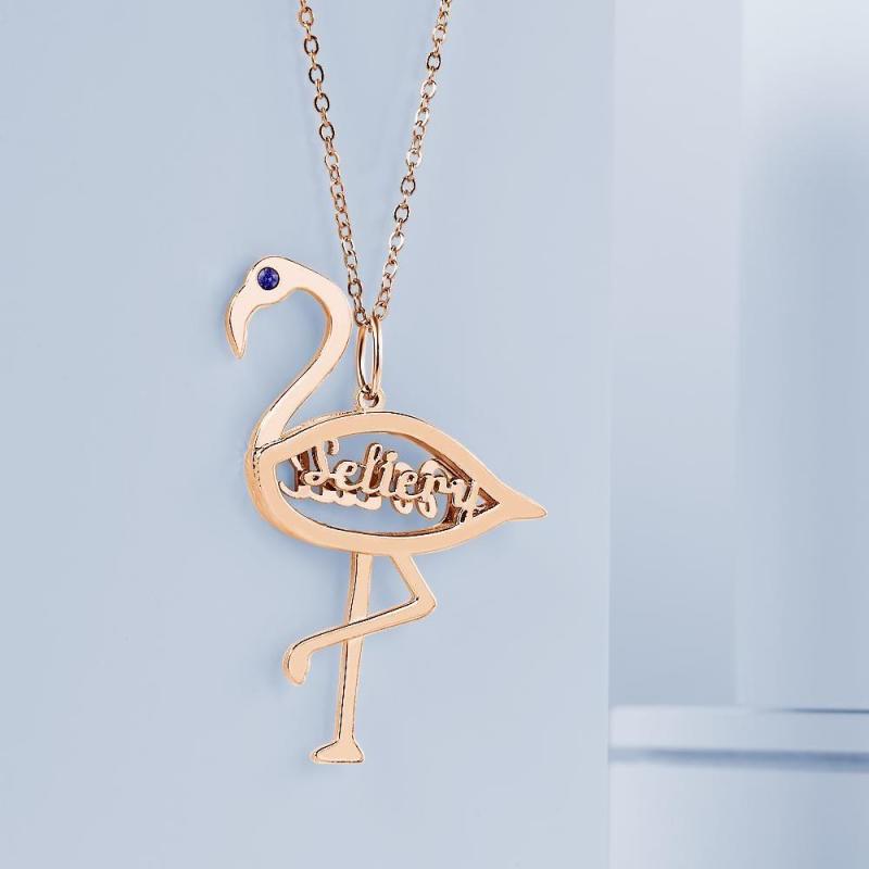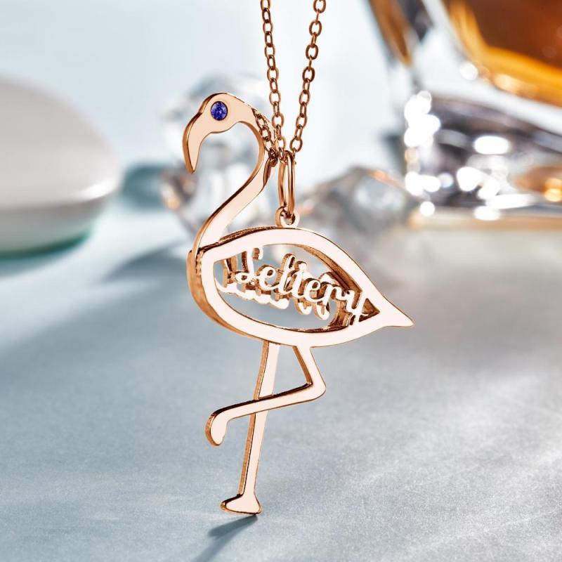 Custom Name Birthstone Necklace Flamingo Pendant Birthday Gifts Rose Gold Plated Silver