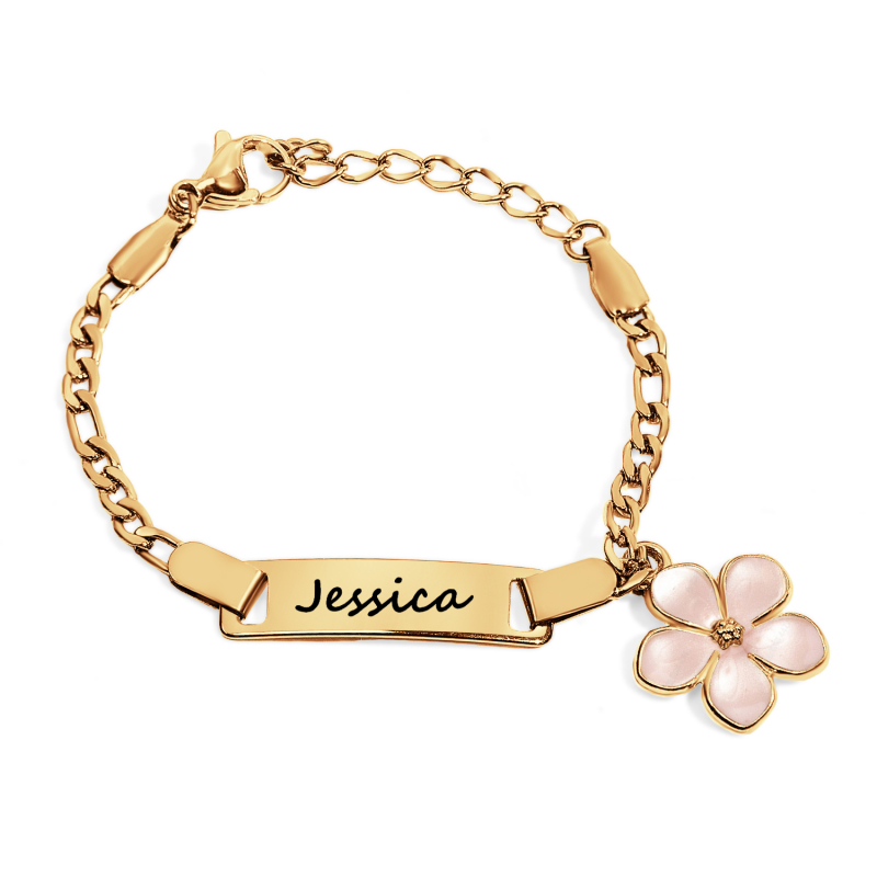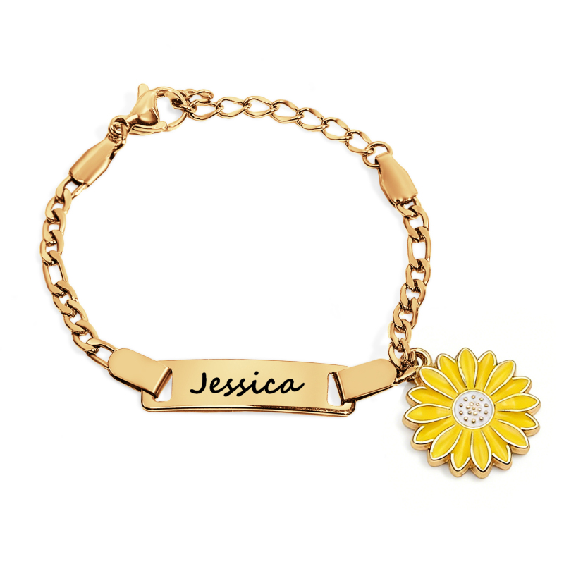 The true highlight is the lovely Personalized Daisy Flower Charm, which can be delicately engraved with her name. This sweet daisy symbol of innocence and joy, combined with her special name, transforms the bracelet into a treasured keepsake. Crafted with care from hypoallergenic materials and a secure, child-friendly clasp, it’s built for both style and safety.