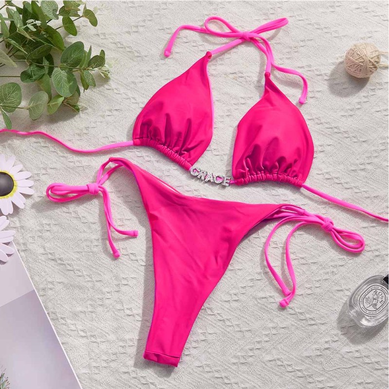 Personalized Crystal Letters: Make your bikini truly unique by customizing it with your name or initials in sparkling crystal letters. It's a fun and fashionable way to express your individuality and style.