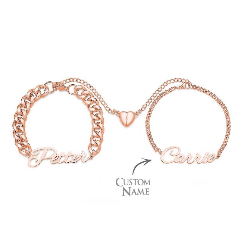 Custom Name Couple Bracelet Magnetic Heart Gift for Lover