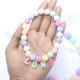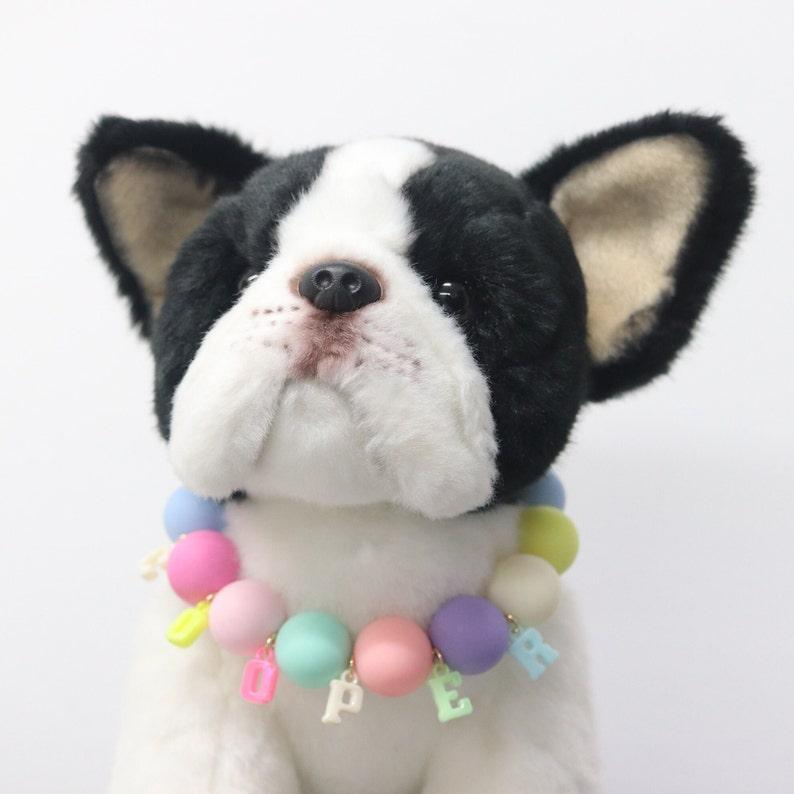 Custom name dog and cat necklace is a rainbow bead girly dog collar. This cute colorful collar is perfect for a pastel party or birthday girl dog celebration. This fancy dog collar is stretchy.