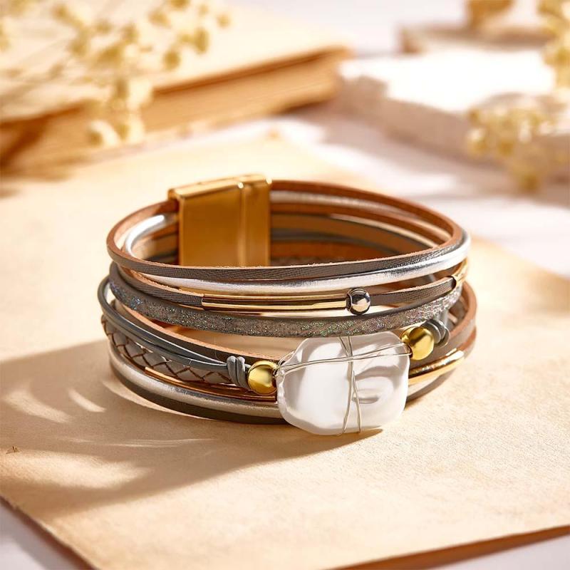 Custom Name Leather Cuff Bracelet Baroque Wrap Bohemian Gift