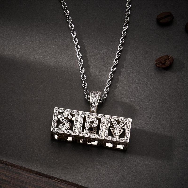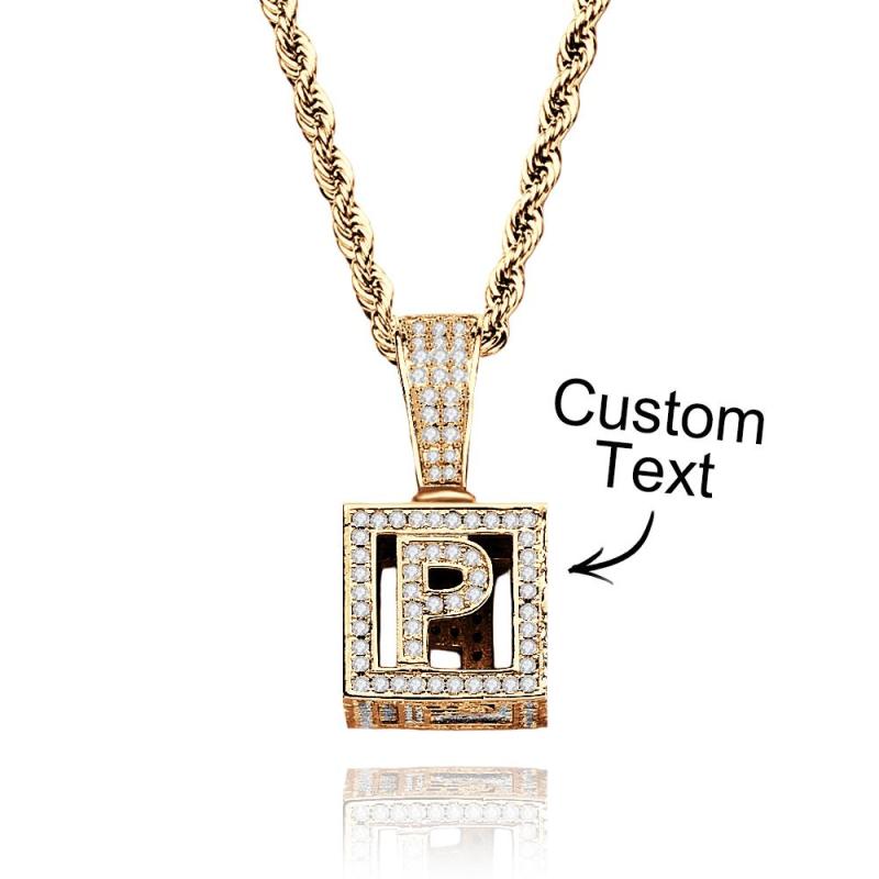 Custom Name Necklace Block Cube Letter Chain Hip Hop Necklace For Men