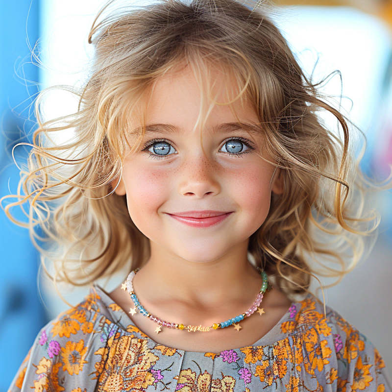 Whether they're headed to the beach, a playdate, or a summer party, our Custom Name Necklace is sure to make a statement and showcase their unique style. It's lightweight, comfortable to wear, and easy to layer with other necklaces for a trendy look.