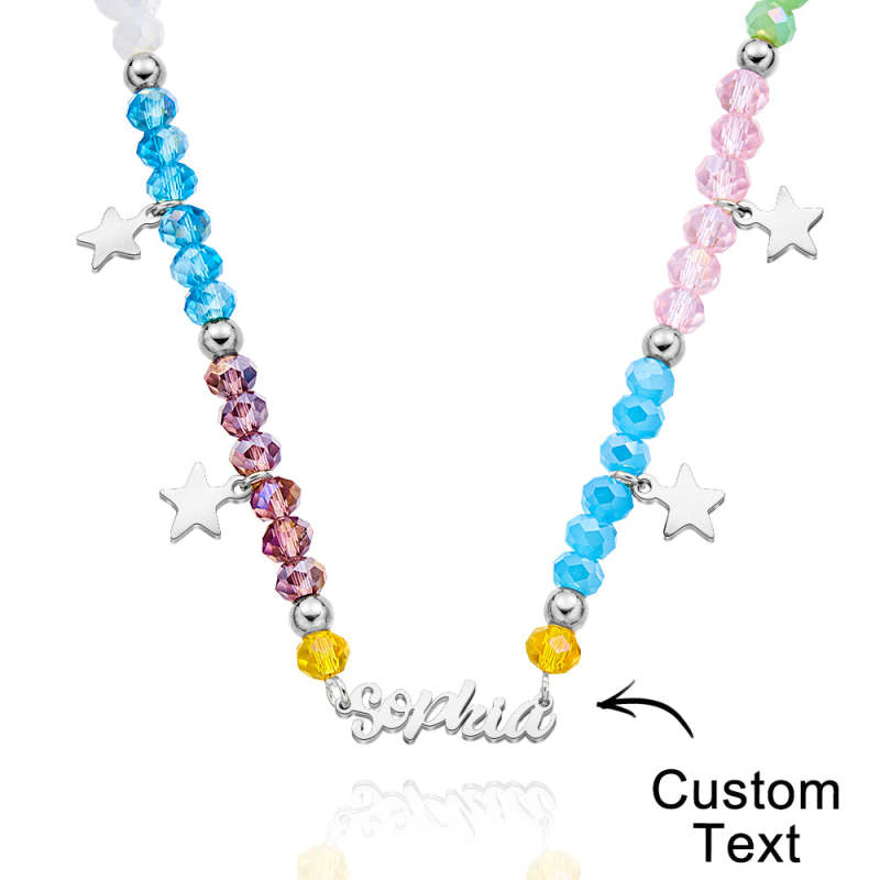 Introducing our Custom Name Necklace Summer Fashion Colorful Beaded Necklace for Kids. The perfect accessory to brighten up your little one's summer wardrobe!