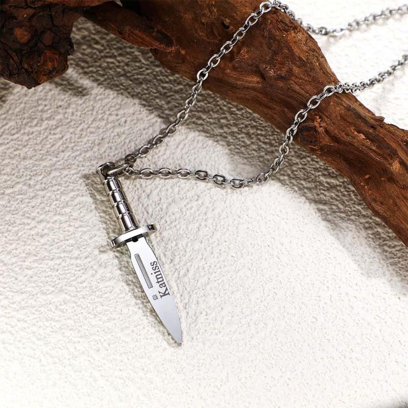 Custom Name Necklace Metal Dagger Cool Gift for Men