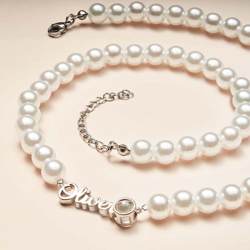 Custom Name Necklace Projection Pearl Chain Valentine's Day Gift