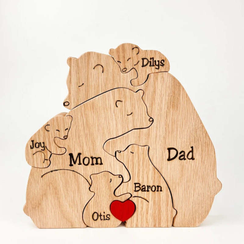 Custom Names Wooden Bears Family Block Puzzle Home Decor Gifts