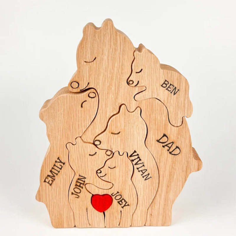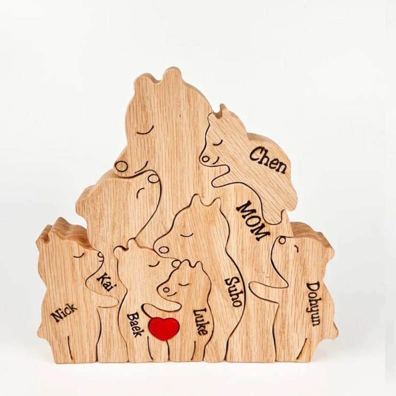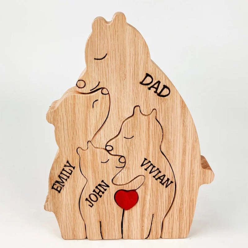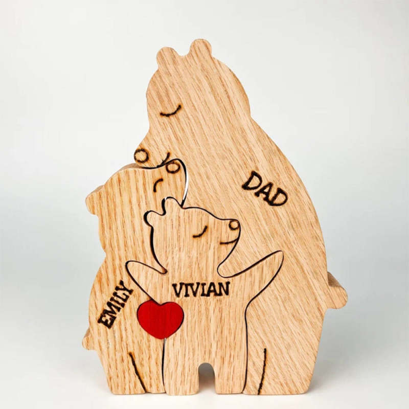 Custom Names Wooden Single Parent Bears Family Block Puzzle Home Decor Gifts