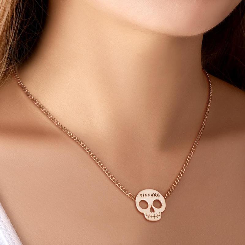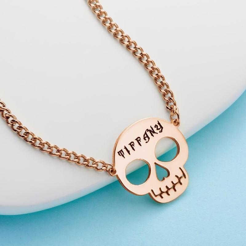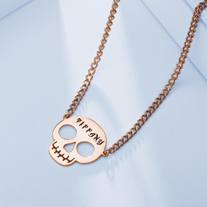 Custom Necklace Skull Necklace Gifts for Her Rose Gold Plated