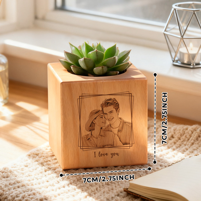 Handcrafted from sustainable, FSC-certified wood, each planter includes a live succulent - a living symbol of the bond you shared. Place it on a windowsill, desk, or shelf to keep their memory blooming.
