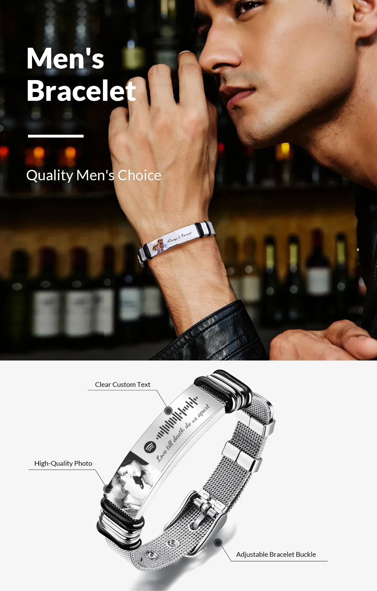 Custom Photo And Engraved Stainless Steel Bracelet Best Something New Gift for Wedding Day