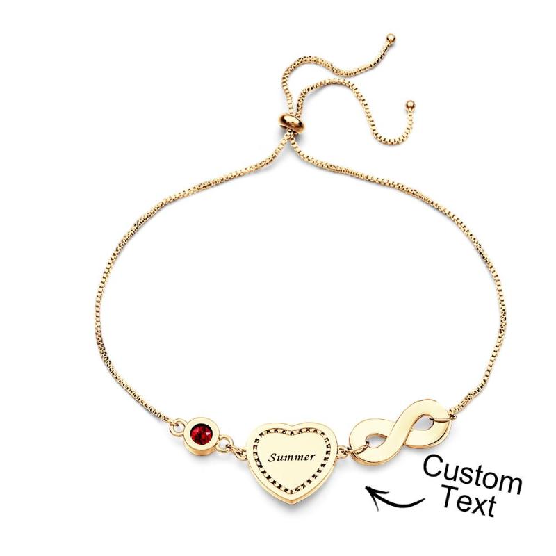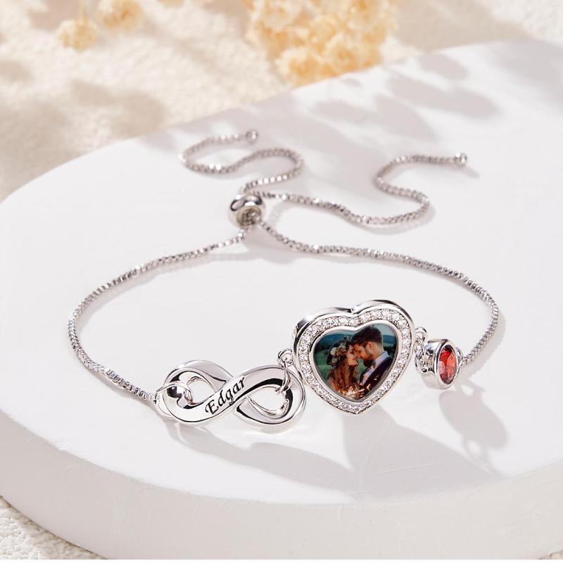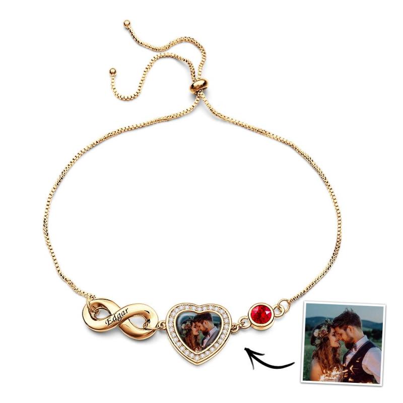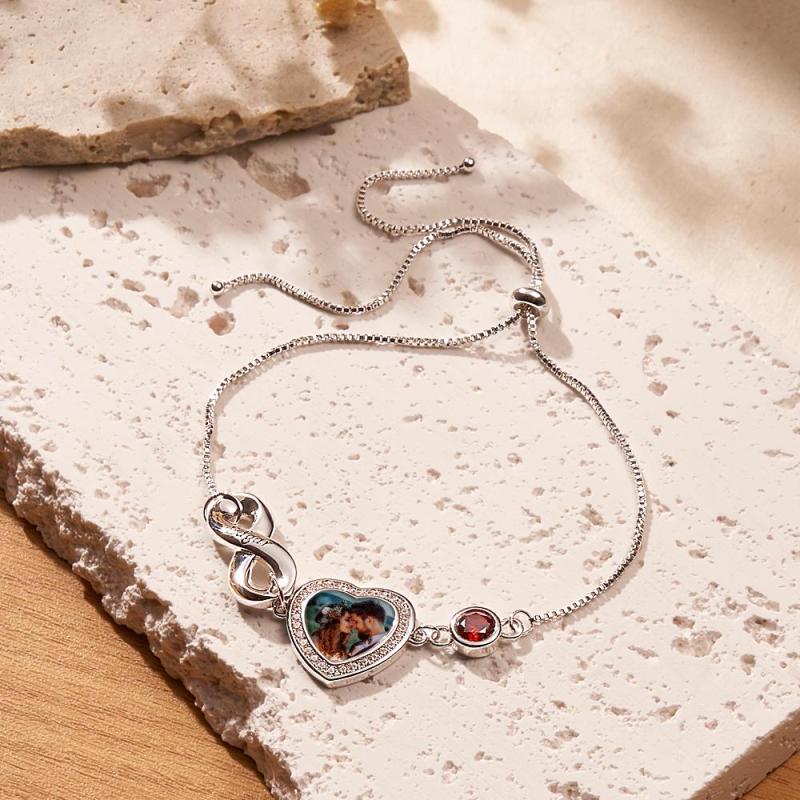 Custom Photo Birthstone Bracelet With Text Adjustable Bracelet Gifts For Women