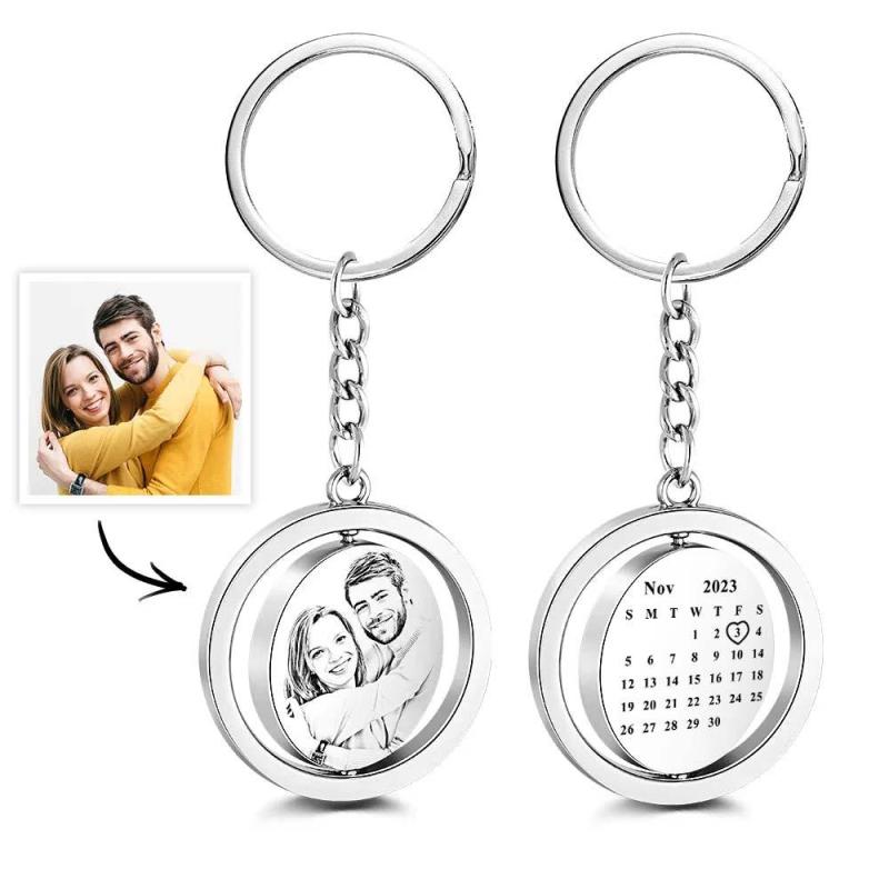 This is a creative photo calendar double-sided keychain. The whole body design is simple, you can customize the photos of you and your lover on the front, and your anniversary can be customized on the back. This is a perfect metal keychain with good material, small size and easy to carry. Suitable for anniversary/Valentine's Day/confession and other occasions.