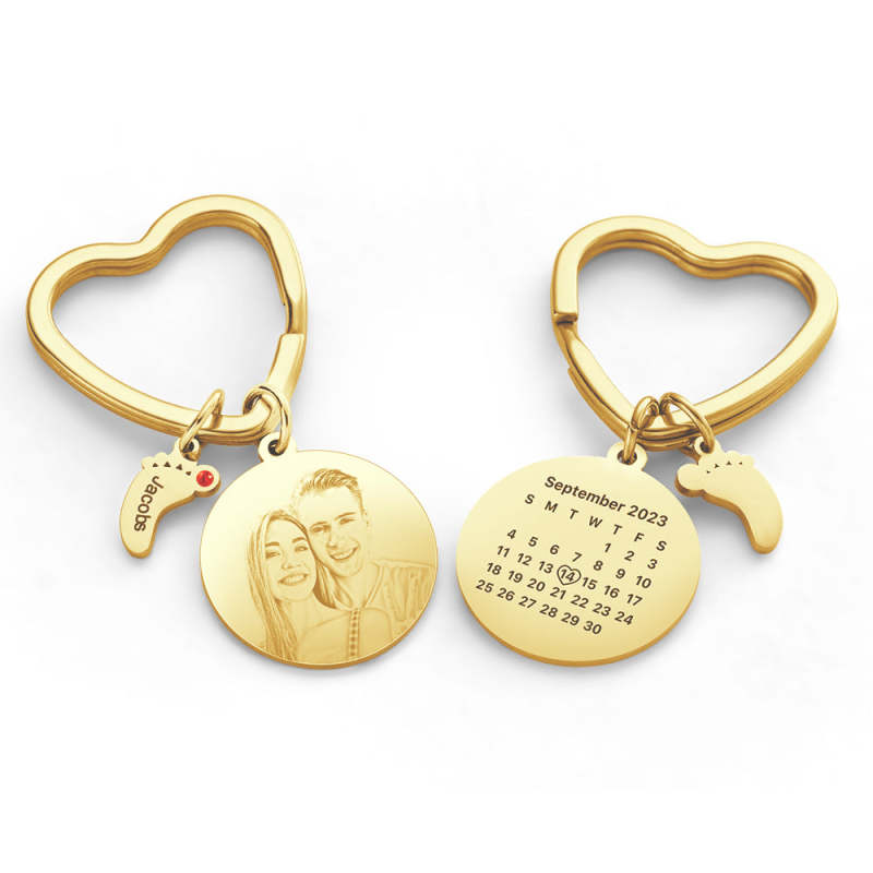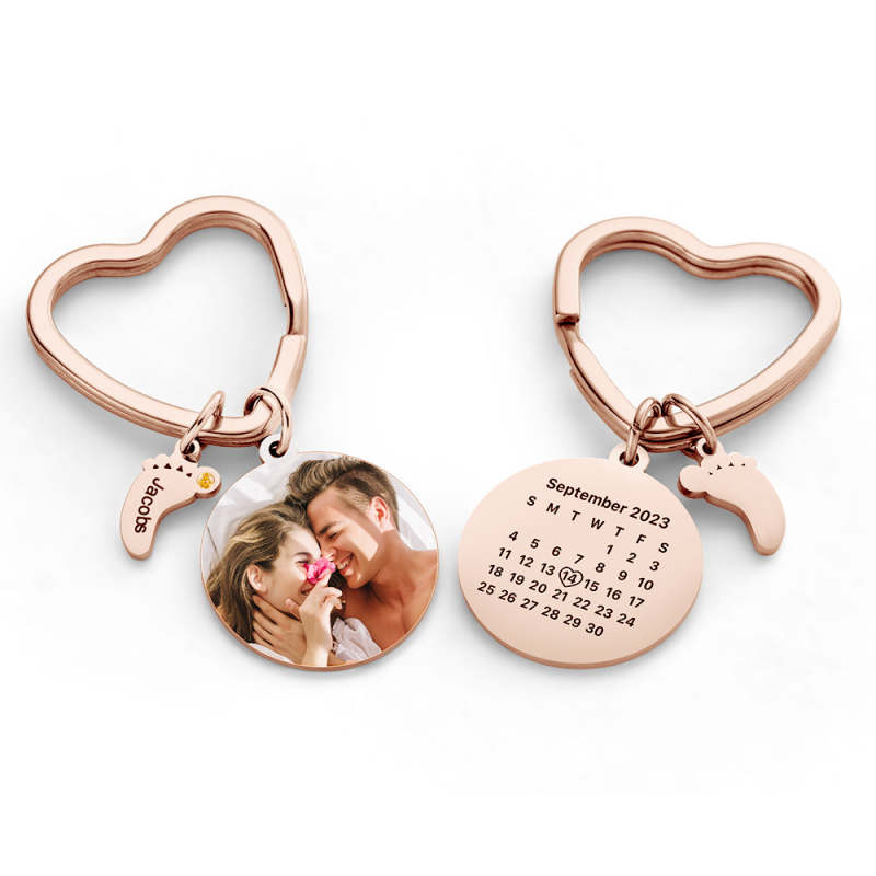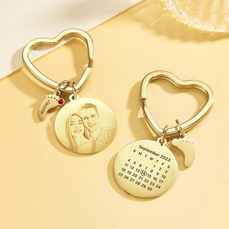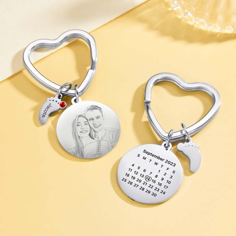 Celebrate life's special moments with this one-of-a-kind keychain! Personalize it with a custom photo of your choice, a birthstone of your color selection, and adorn it with a delicate baby feet charm. Put a smile on your loved one's face with this heartfelt gift they'll treasure for a lifetime!