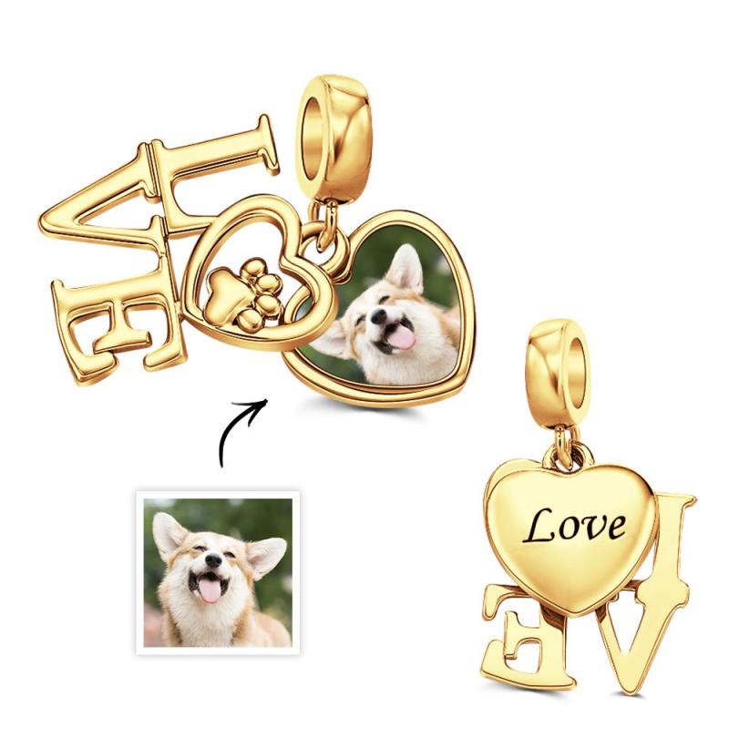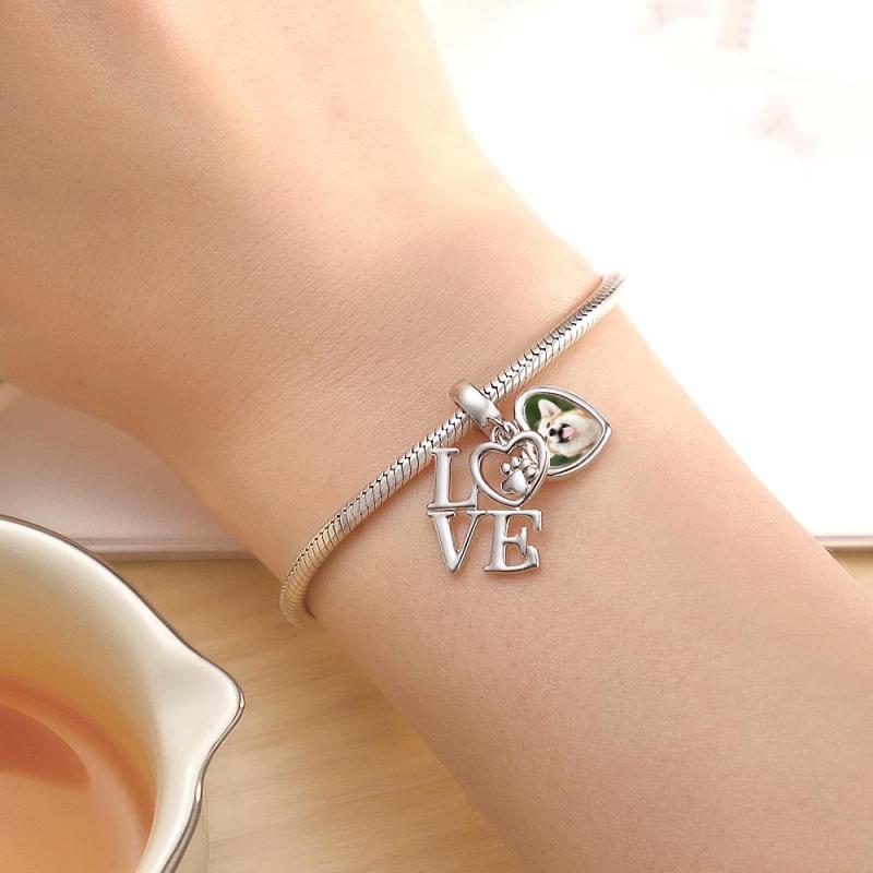 Custom Photo Charm Pet Lover Paw Double Pendant Gift