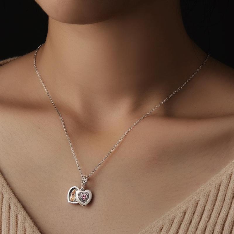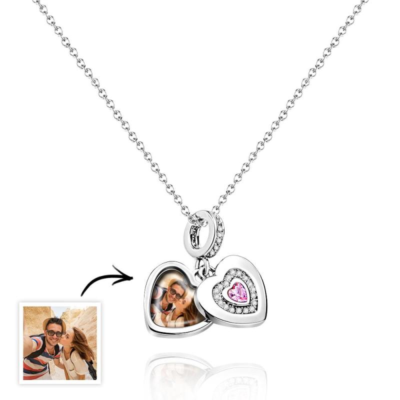 Custom Photo Charm with Necklace Individual Personalized Photo Charm with Heart Birthstone Photo Gift