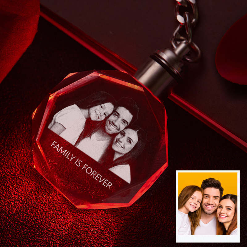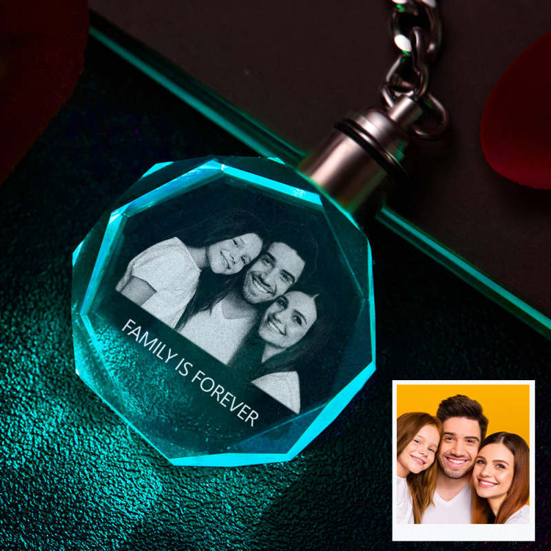 Custom Photo Crystal Keychain Family Keepake Crystal Keychain Octagon Shape Photo Keychain