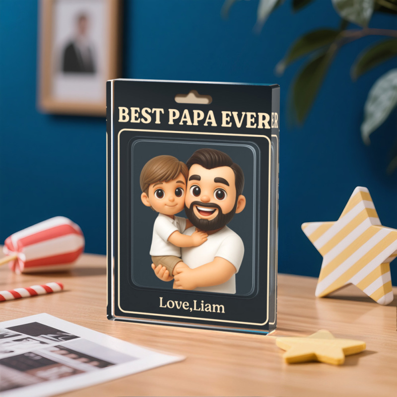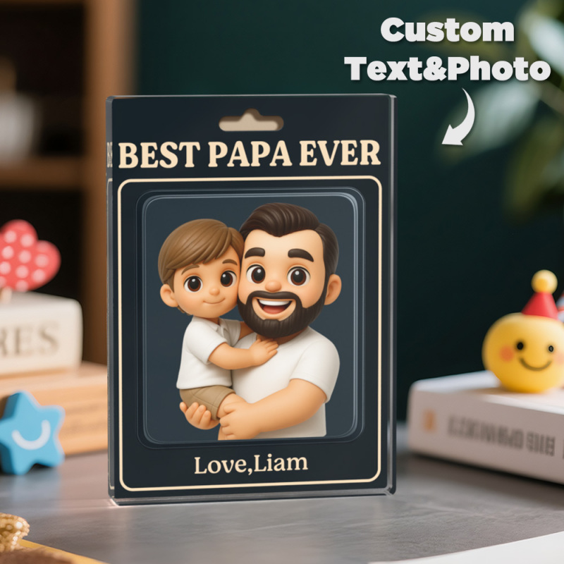Custom Photo Dad And Kids Action Figure Acrylic Block Plaque For Father's Day Gift