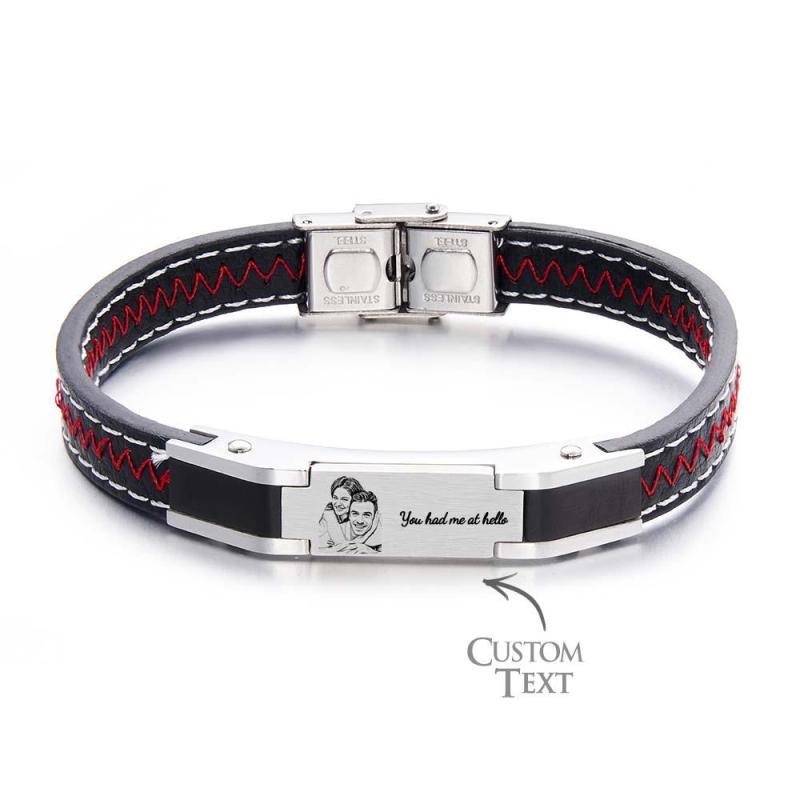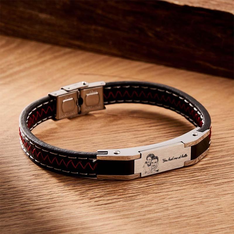 Custom Photo Engraved Bracelet Fashion Leather Men's Gift
