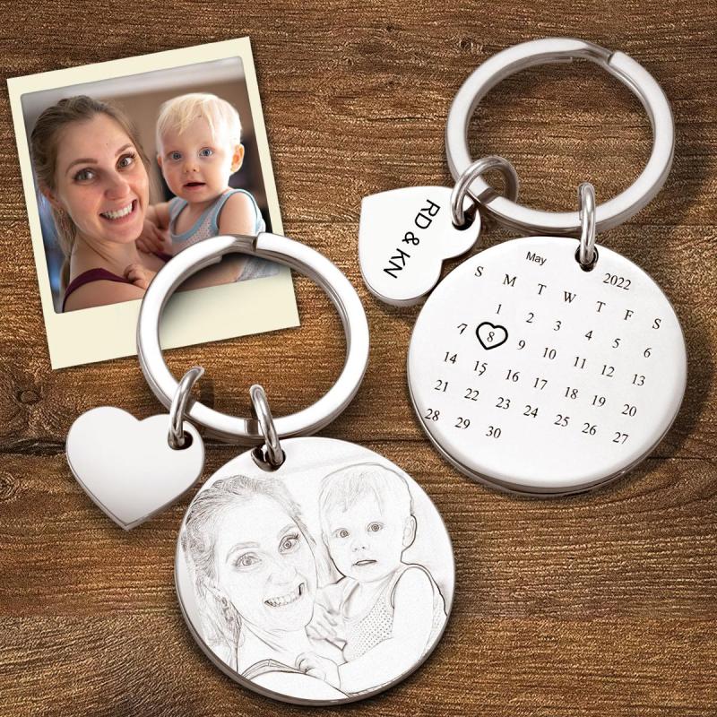 Custom Photo Engraved Keychain Date Save Keychain Significant Date Marker Custom Anniversary Gift For Mom
