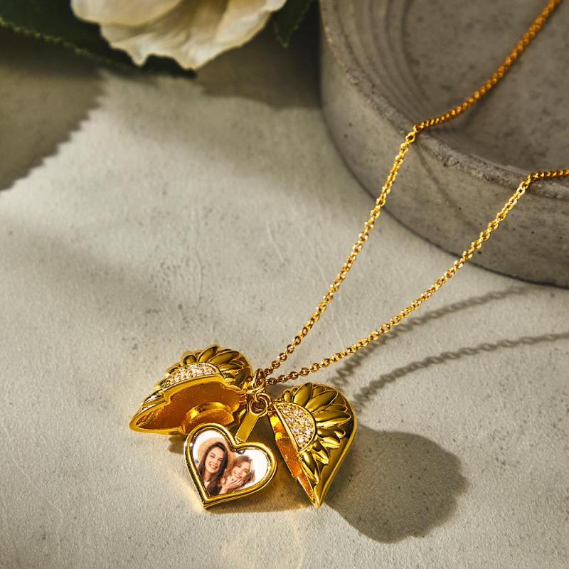 Custom Photo Engraved Necklace Sunflower Heart Pendant Necklace Gift for Women