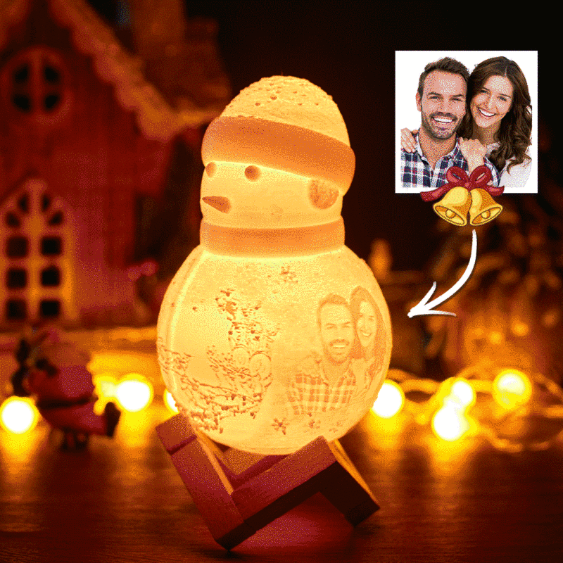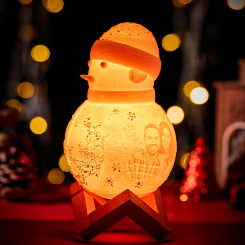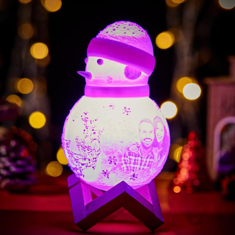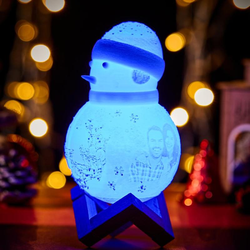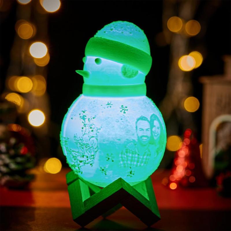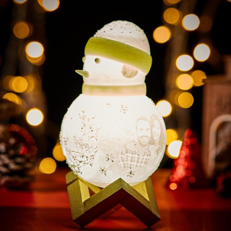 Snowman Lamp, Custom Photo Engraved Night Light Christmas Gift for Lover - Tap Three Colors