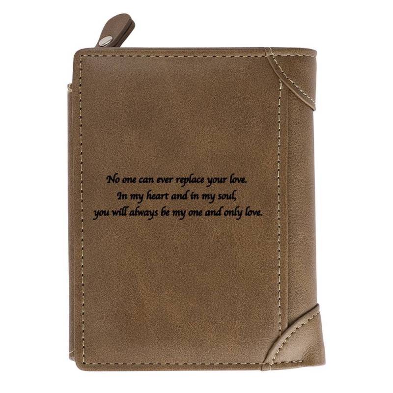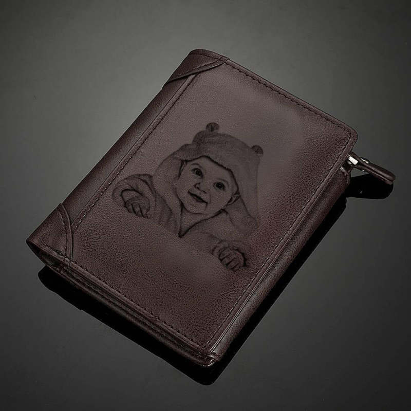 Our Photo Wallet will capture a moment that is gone forever. The photo will never fall off! This photo wallet is designed to provide you with a quick and easy way to create a unique and useful souvenir. Advanced fabric and the classic design makes the wallet even more stylish. The design is very traditional, the size is perfect, the details are very gorgeous, really have the appearance of high-end wallet. Once you place an order, you'll be able to preview how it will appear on the wallet. Please do remember high resolution picture will come out better than the preview. This wallet is a great birthday gift idea for all ages. Custom Inscription Photo Engraved Wallet Leather Light Khaki.
