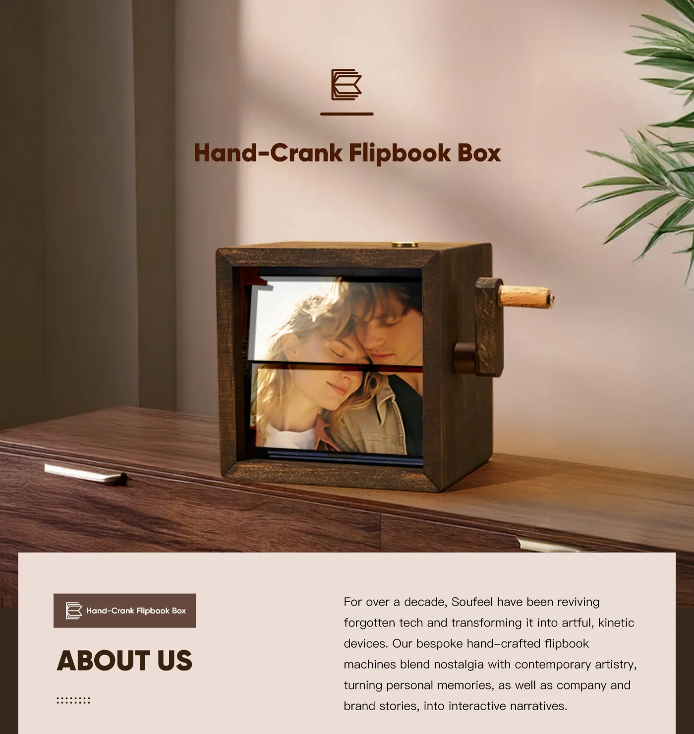 Custom Photo Flipbook Frame Vertical 13*16cm Animation Machine Mechanical Hand-cranked Flipbook Box Photo Album with Light Memorial Gift