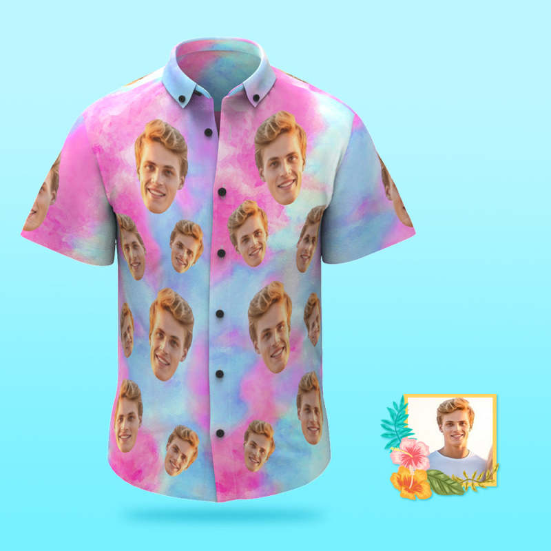 Custom Photo Hawaiian Shirt Beach Vacation Men's Popular Tie Dye All Over Print Hawaiian Beach Shirt Holiday Gift