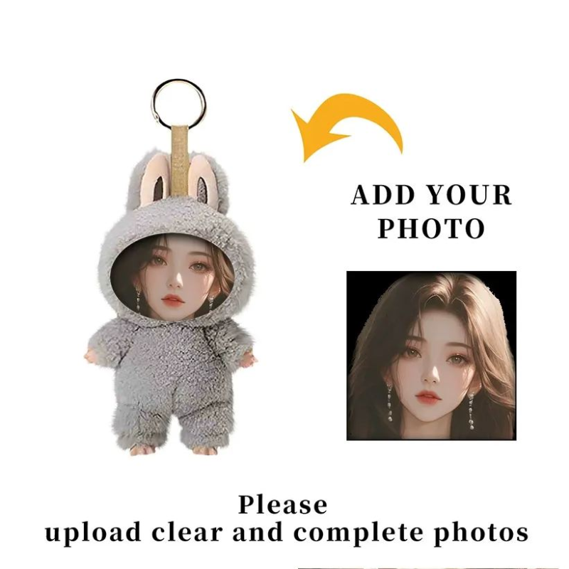 Turn precious moments or funny memories into a portable treasure with our Custom Photo Keychain Doll-a playful blend of DIY personalization and plush charm, designed to stand out as a unique pendant. Crafted with a cute big face (big face design), this soft plush doll lets you print your favorite photo-whether it’s a silly snapshot of a friend, a sweet group photo, or a funny meme-making it a one-of-a-kind accessory that’s full of personality.