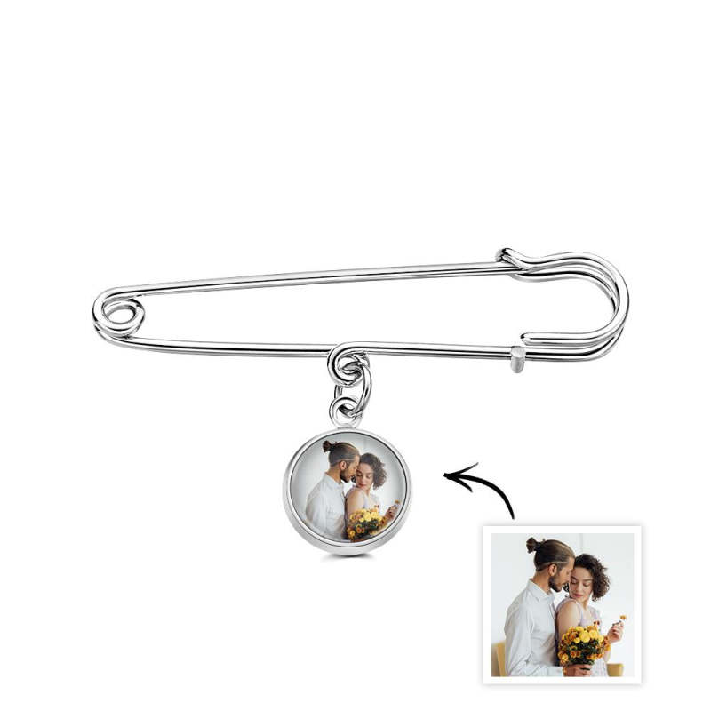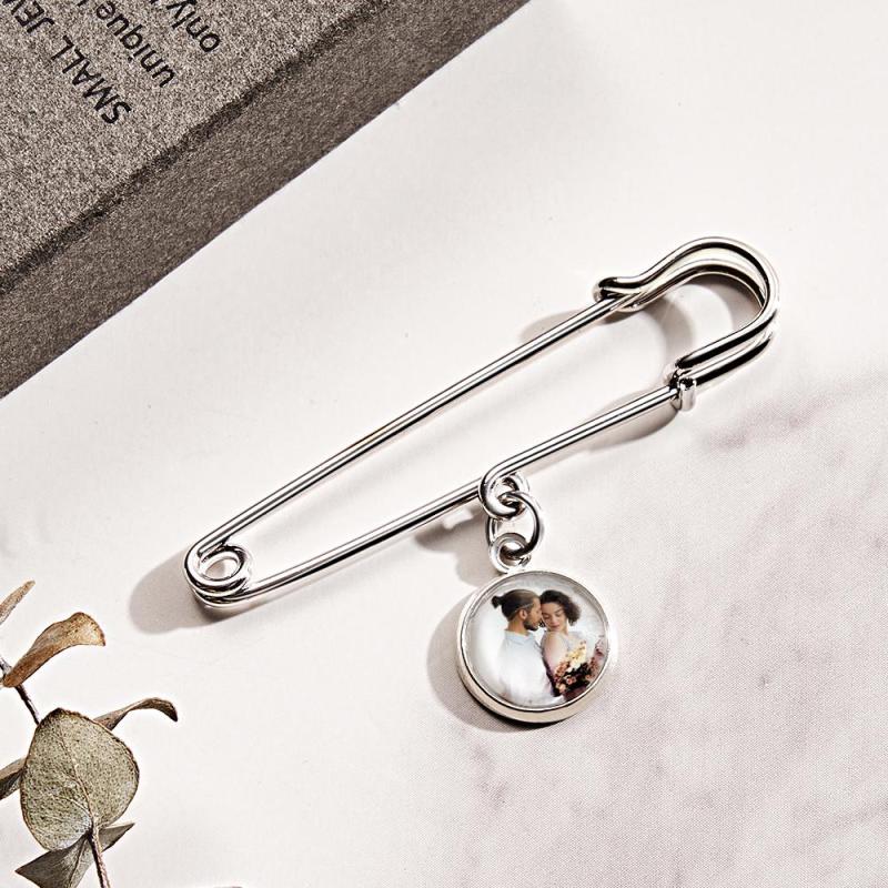 Custom Photo Lapel Pin With Circle Pendant Unique Brooch Gift For Man