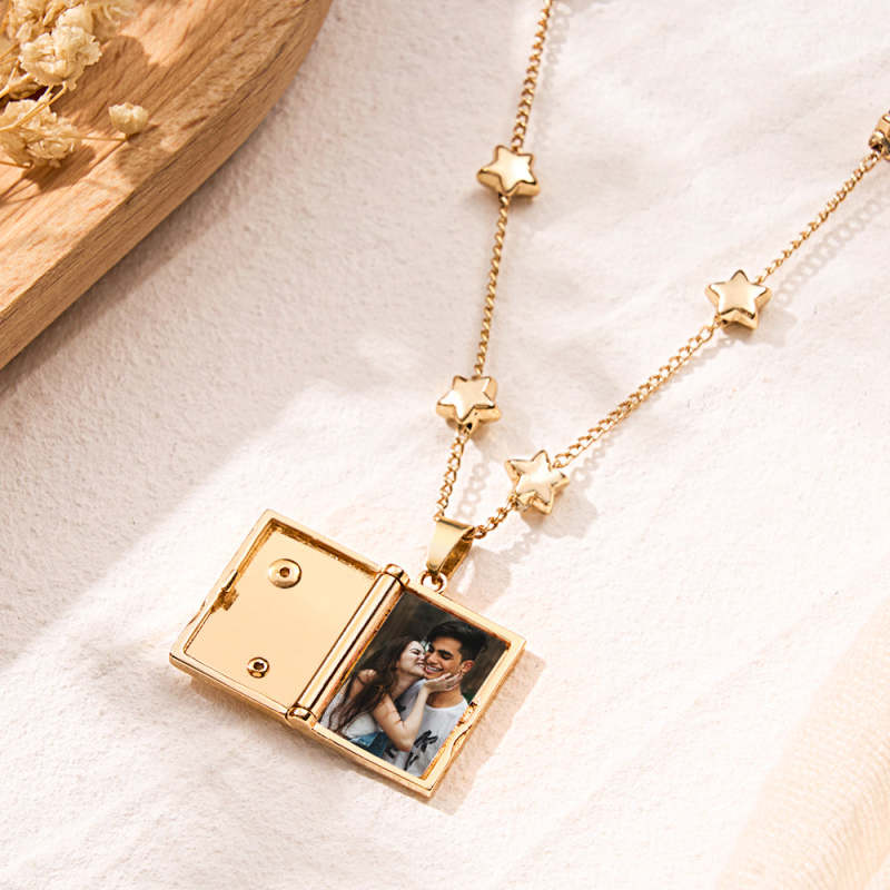 Custom Photo Locket Necklace Fashionable Star Moon Element Pendant Love Gift