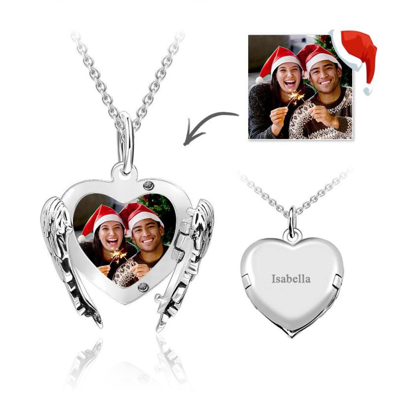 Engravable Photo Locket Necklace Personalised Heart Angel Wings